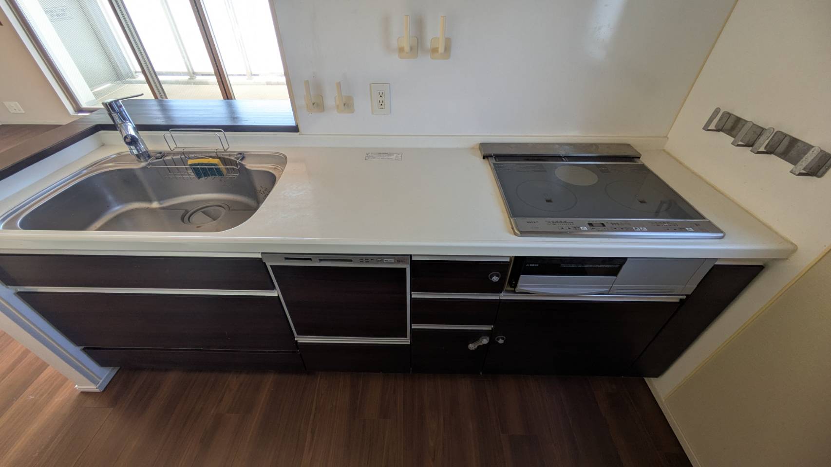 カウンターキッチンは家族との会話がしやすい設計で、料理しながらリビングを見渡せる安心感があります。
